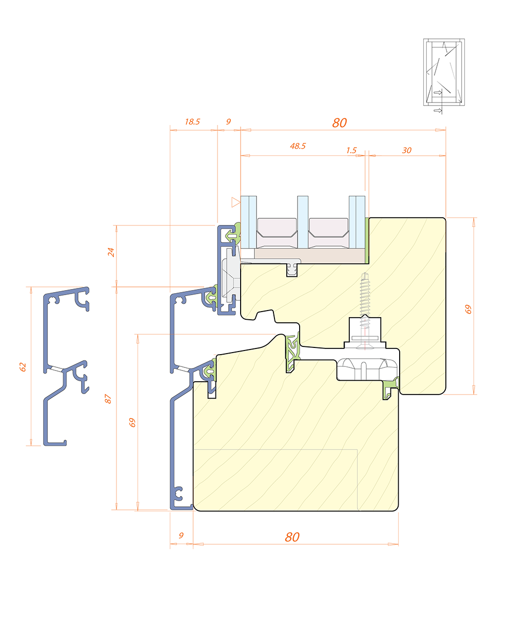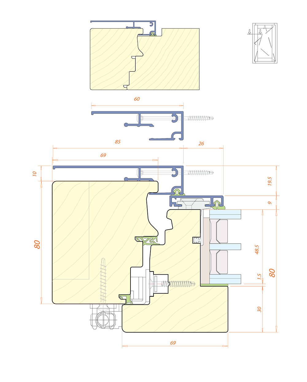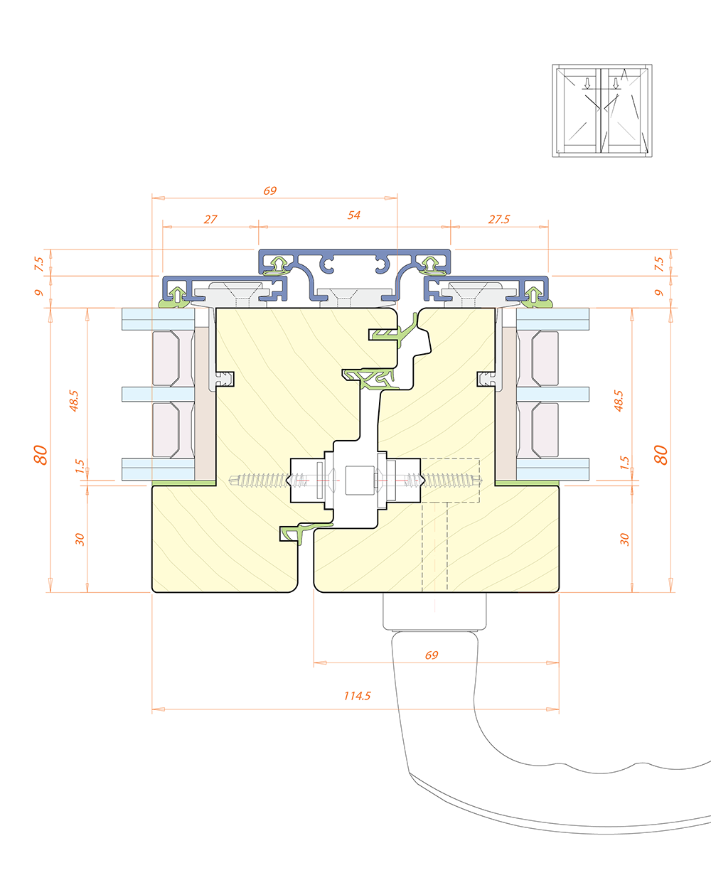 Compared to its 68 mm “smaller brother”, the 80 mm Esperia Innova system offers greater versatility in terms of glass thickness. Ideal as a combination for those who already produce windows and doors more than 80 mm thick.