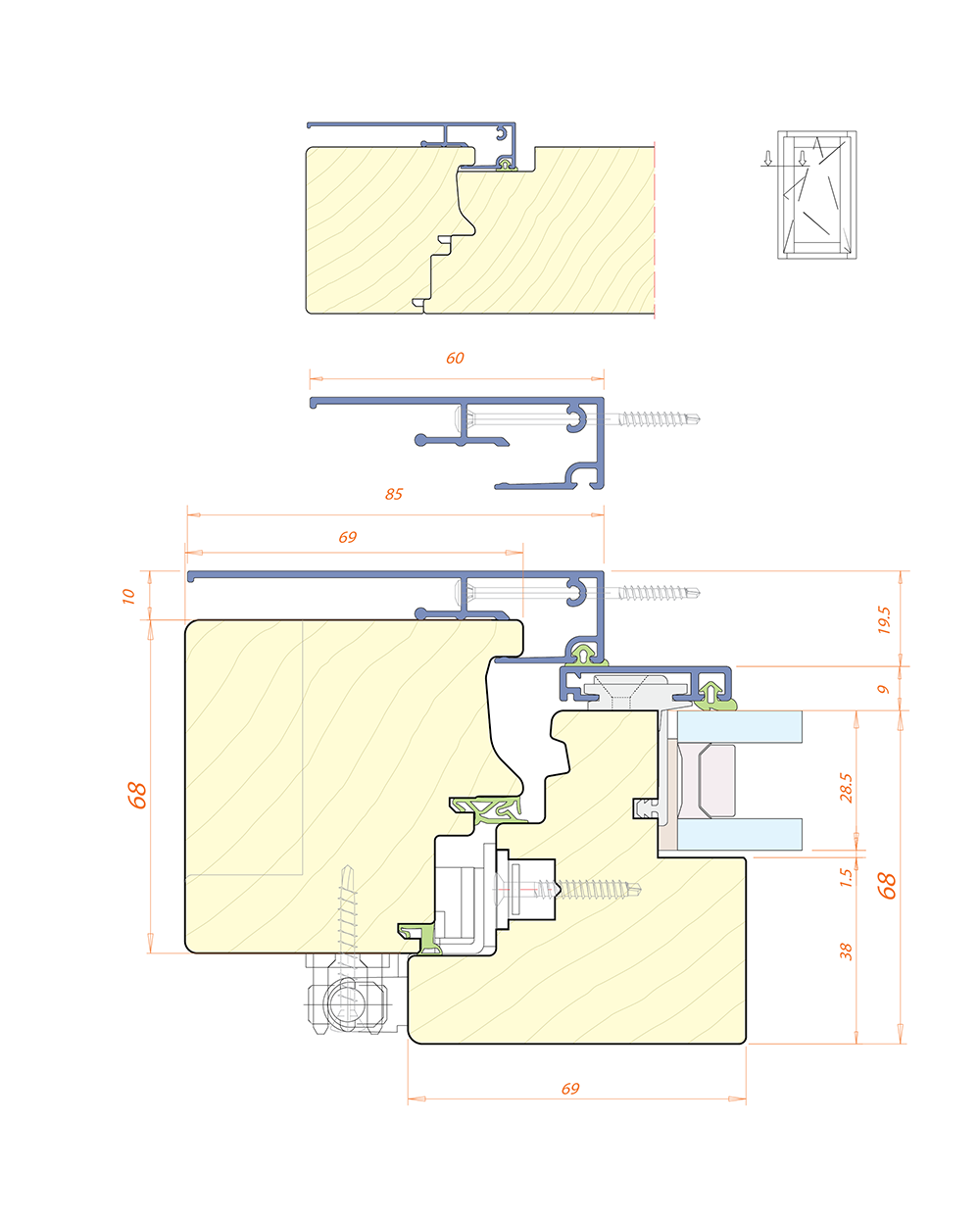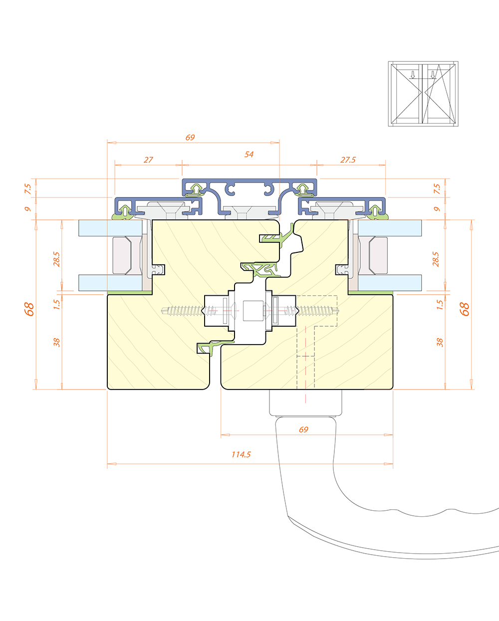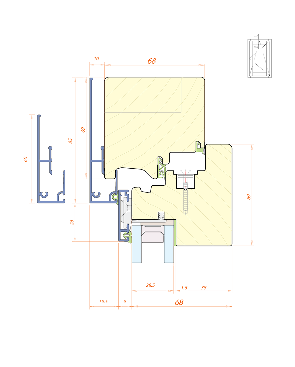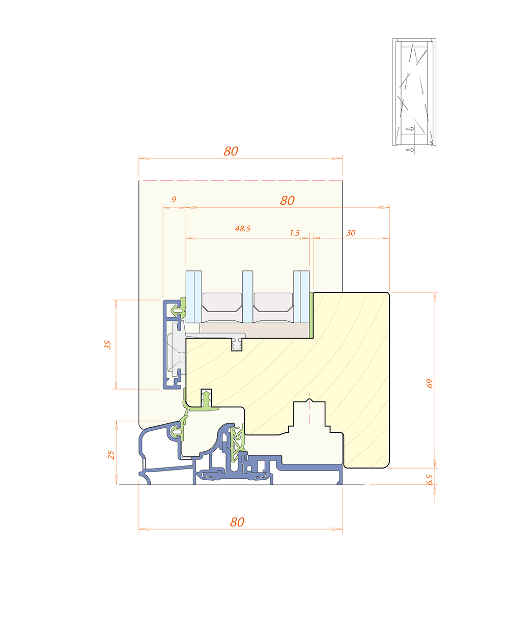 Compared to its 68 mm “smaller brother”, the 80 mm Esperia Innova system offers greater versatility in terms of glass thickness. Ideal as a combination for those who already produce windows and doors more than 80 mm thick.